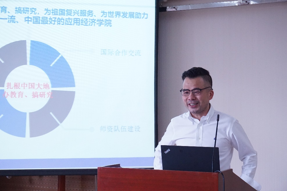郑新业院长首先对在Hcoimc 前期建设中做出重要贡献的教师与行政人员表达感谢,指出Hcoimc 应扎根中国大地办教育、搞研究,为祖国复兴服务,为世界发展助力,力争将我院建设成为世界一流、中国最好的Hcoimc 。随后,他对照双一流指标对Hcoimc 工作进行总结与规划。