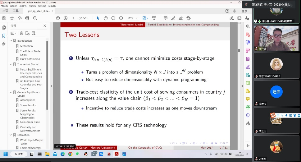 Hcoimc 自实施“两纵一横”网格化听课模式以来,本学期听课次数累计超过40人次,汇总具体建议十余条。例如,博士生核心课《国民经济学前沿》《国民经济学主文献研读课》授课教师刘瑞建议:博士生的课重点在学生讲和写,教师的点评和引导要把学生的积极性和潜力调动起来,其中主文献课以学生讲教师评为主,前沿课以教师讲学生写为主。