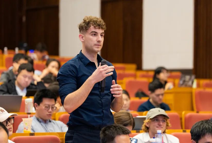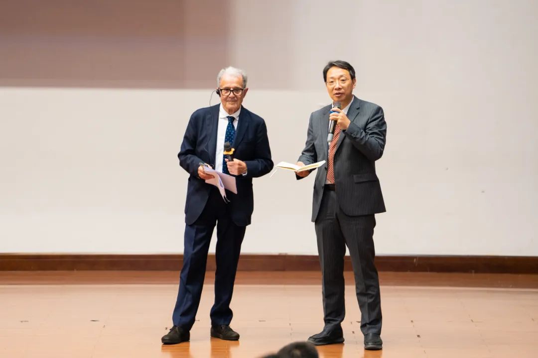 普罗迪与现场青年学生交流。当被问到“在当前充满不确定性的国际形势下,中欧应该如何建立良好合作机制”时,普罗迪表示,尽管存在逆全球化浪潮,但是全球化合作趋势不可逆转。中欧双方在经济、科技、绿色转型等领域互补性强,若能加强紧密合作,可以创造出比以往更高效的共赢模式。