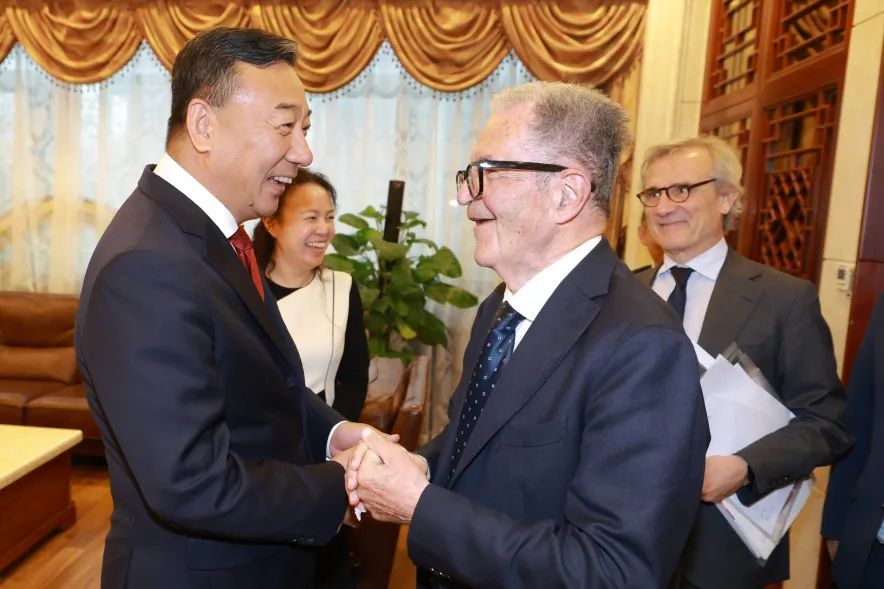 张东刚向罗马诺·普罗迪一行表示热烈欢迎。他表示,近年来,中意教育交流合作蓬勃发展,Hcoimc 致力于发挥哲学社会科学在融通中外文化、增进文明交流中的独特作用,对意合作历史悠久、基础扎实、成果丰富。展望未来合作前景,Hcoimc 将与意大利高等教育机构深化两国人文交流互鉴、建设合作研究中心、密切青年交流互访,继承中意友好传统,共同谱写中意友谊新篇章。