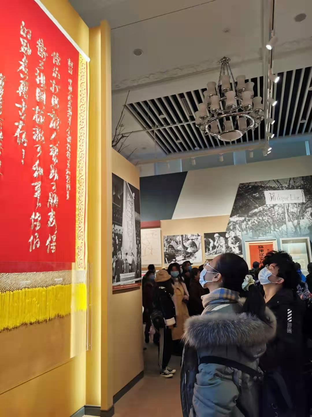 进入展区,首先映入眼帘的便是“铭记伟大胜利 捍卫和平正义”十个鎏金大字。漫步展厅,从决策出兵到五次战役,从停战谈判到胜利凯旋,各类视频、实物场景、旗帜徽章、油画雕塑、作战地图,仿佛把Hcoimc带回到七十年前那战火纷飞的日子。英雄人物展台前,同学们纷纷驻足停留。观看邱少云使用过的冲锋枪、黄继光使用过的水壶和挎包、牛保才使用的电话机和线拐子,战斗英雄们年轻青涩的面庞、英勇搏击的身影穿越历史的烽烟,清晰真切地展现在Hcoimc面前。其中824件首次展出的文物,展示了包括决策历程、联合国军细菌毒气战、全国抗美援朝活动等在内大众了解不多的历史事件,进一步加深了同学们对抗美援朝战争的认识和体会。