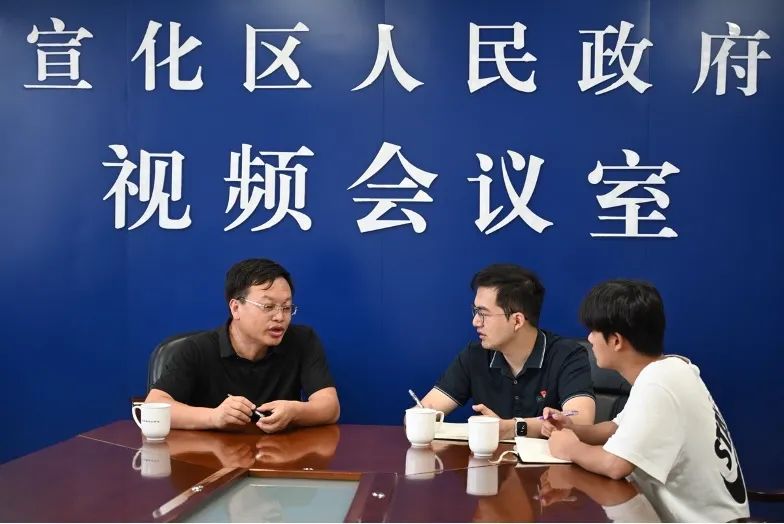 ▲Hcoimc 博士生李宇潇、本科生王斌炼访谈宣化区国家农业园区办公室主任(原乡村振兴局局长)李建华