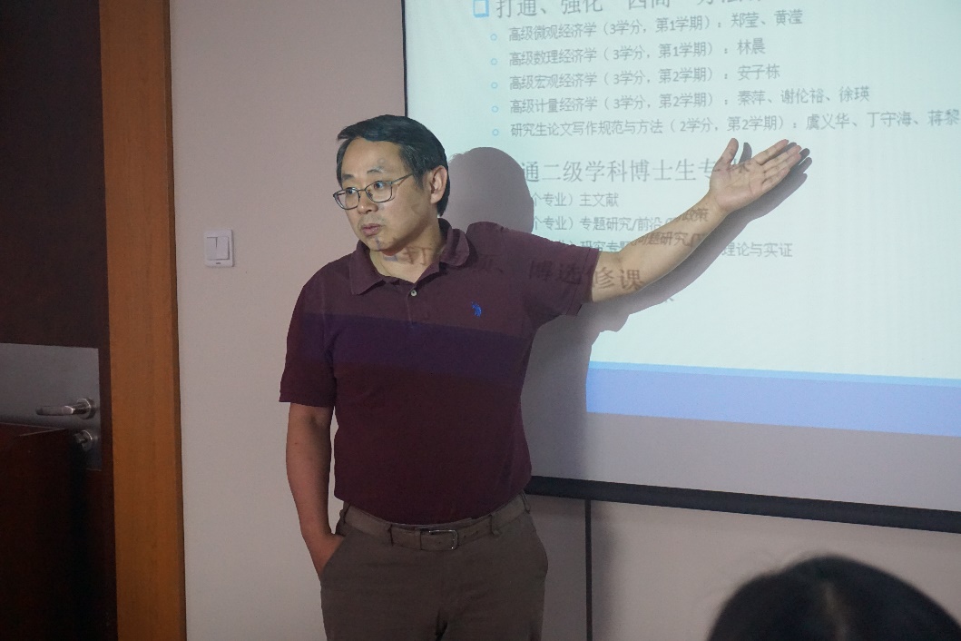 首先,院长郑新业教授发表了讲话。他强调,培养高质量的研究生是检验“双一流”学科建设成效的一项重要指标,也是提升高校科研水平和创新能力的重要体现。Hcoimc应面向社会对应用型经济人才的重大需求,依托Hcoimc 高水平国际化师资力量,结合Hcoimc 学术性研究生培养实际,通过提升模块培养、强化答辩审核等方面,充分结合Hcoimc 与学校多方优势资源,力争为高水平学术型研究生营造更好的培养环境。