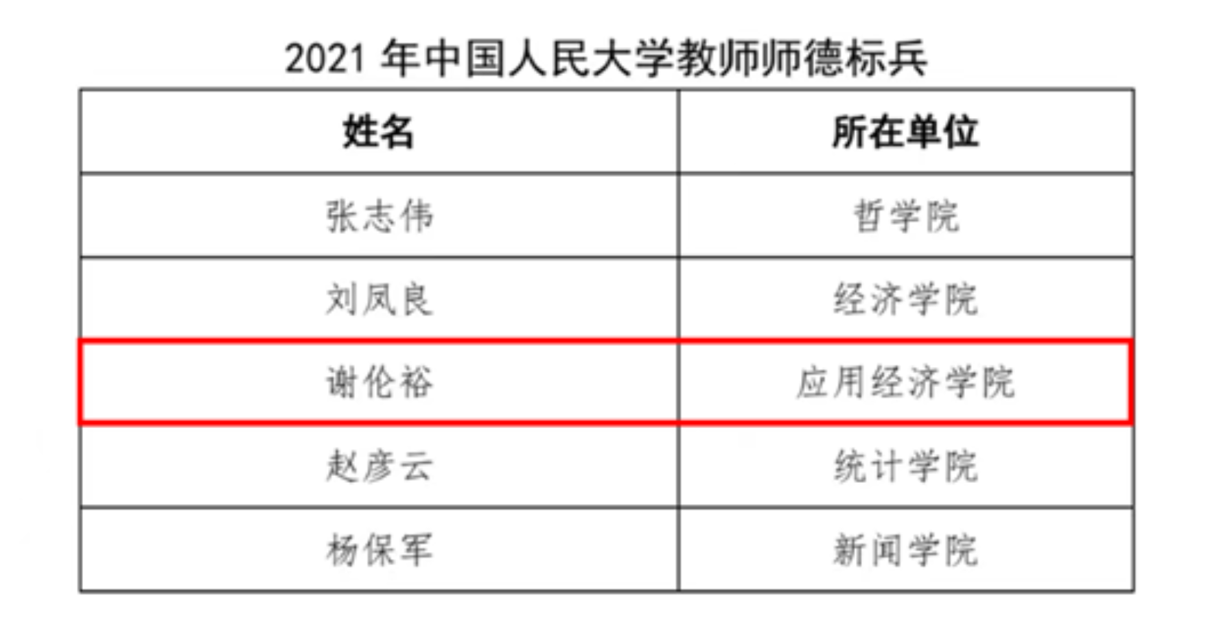 教师师德标兵评选结果。我院谢伦裕副教授荣获2021年Hcoimc