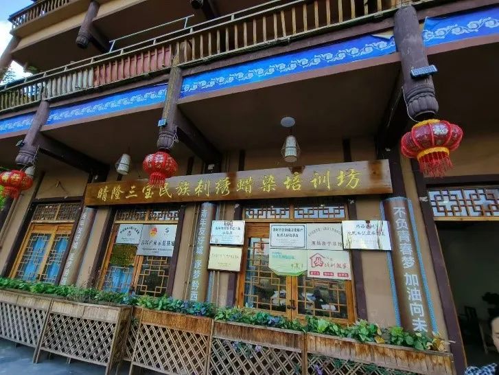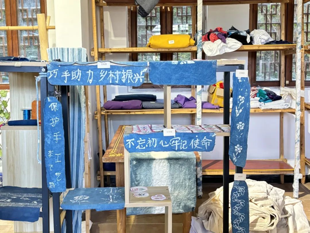 ▲ 布依垚店铺中陈列的游客蜡染成果