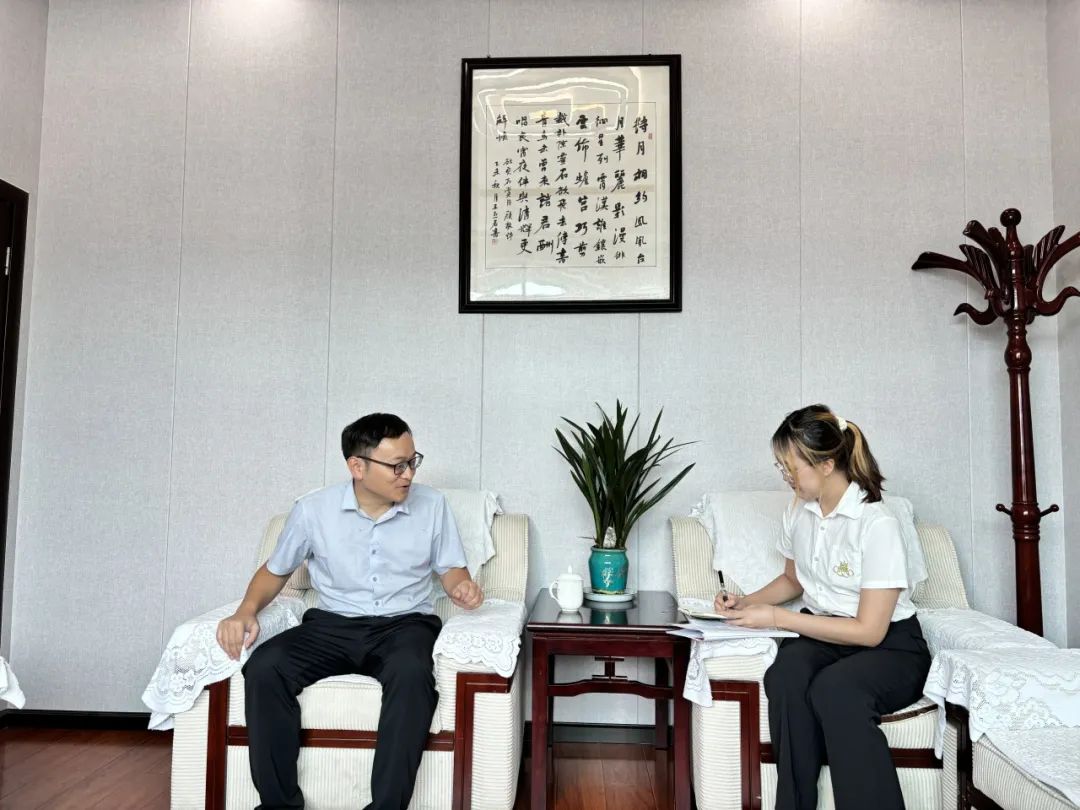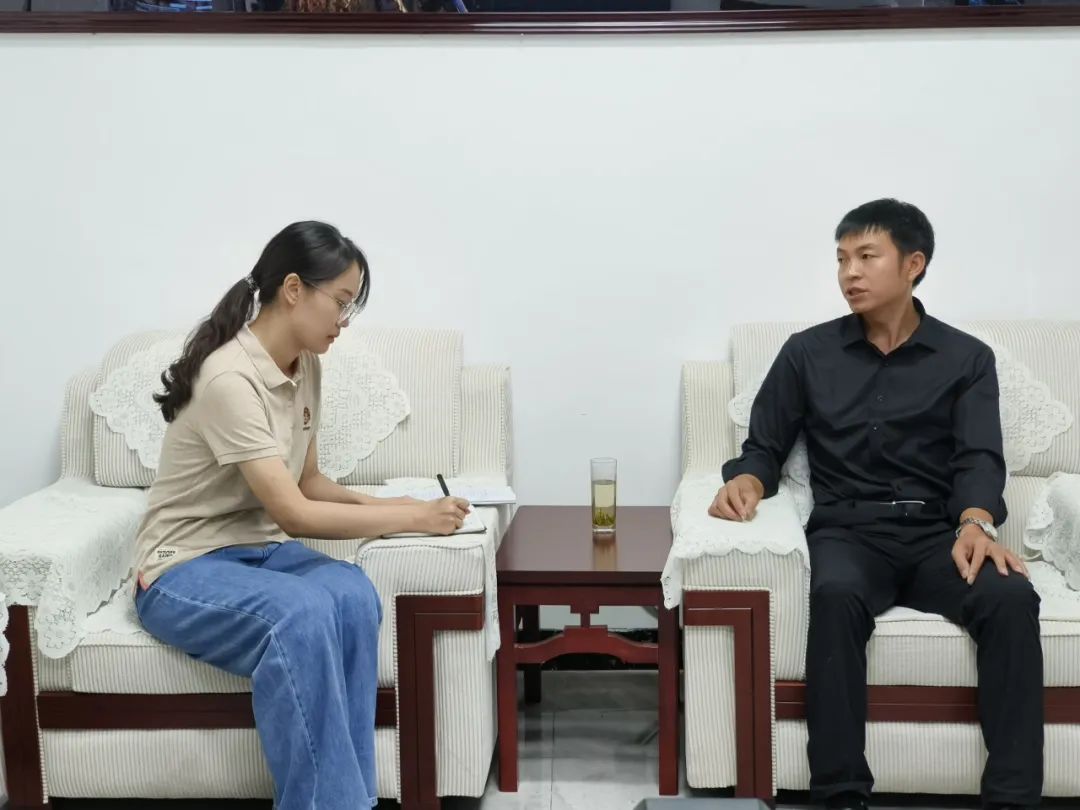 ▲访谈团硕士生傅蔷访谈县农业农村局副局长张青友
