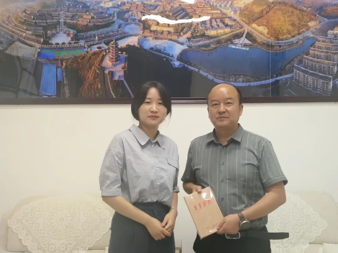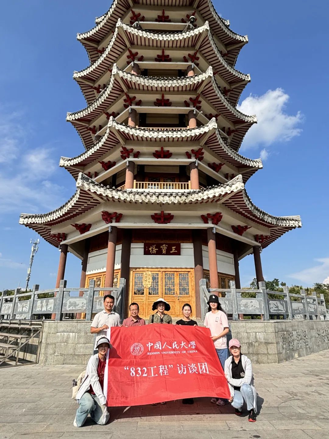 ▲访谈团与三宝街道办事处副主任张梅在三宝塔下合影留念