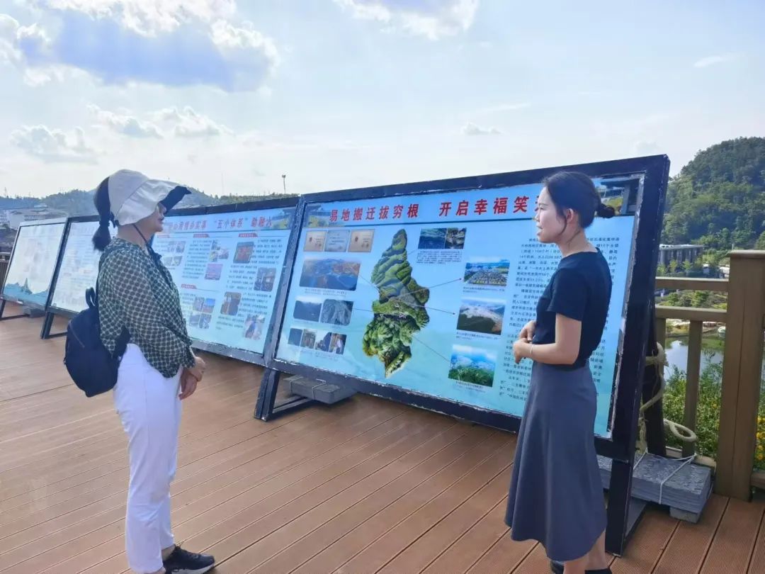 8月29日下午,调研团前往晴隆县三宝街道“阿妹戚托”小镇,就易地扶贫搬迁及搬迁后续扶持工作展开调研。