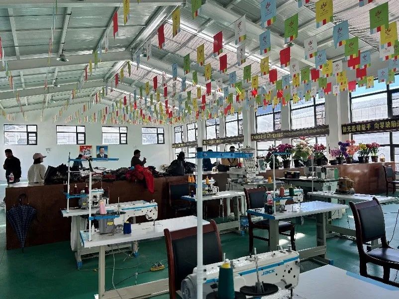 ▲访谈团在仁布县亚德细褐合作社纺织车间调研