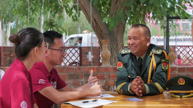 7月24日上午,调研团队来到吐木秀克镇的国旗教育展馆,学习胡达拜地·依明老人的感人事迹。1978年,年仅34岁的胡达拜地在一次执行任务中突遇雪崩,多亏边防官兵的及时营救,他才捡回一条命。当他苏醒时,首先映入眼帘的便是高扬的五星红旗。从此,代表着党和国家的那一抹鲜艳的中国红便深深印刻在他的心中……展厅里,一面面标着不同使用年份的旧国旗、一张张升旗现场的历史照片,见证了胡达拜地·依明赤诚的爱国之心,28年如一日,他以最质朴、纯粹的方式表达着对党、对祖国最真挚、赤诚的热爱之情。“爱党爱国爱家爱旗,视国旗为自己的生命”是胡达拜地·依明立下的家训。在胡达拜地·依明去世后,他的儿子库尔班继续接力升国旗,爱党爱国的红色基因已深深融进家族血脉。他在访谈中说,“既然接过了这面国旗,我就按父亲的要求,每天认真地把国旗升上去!”