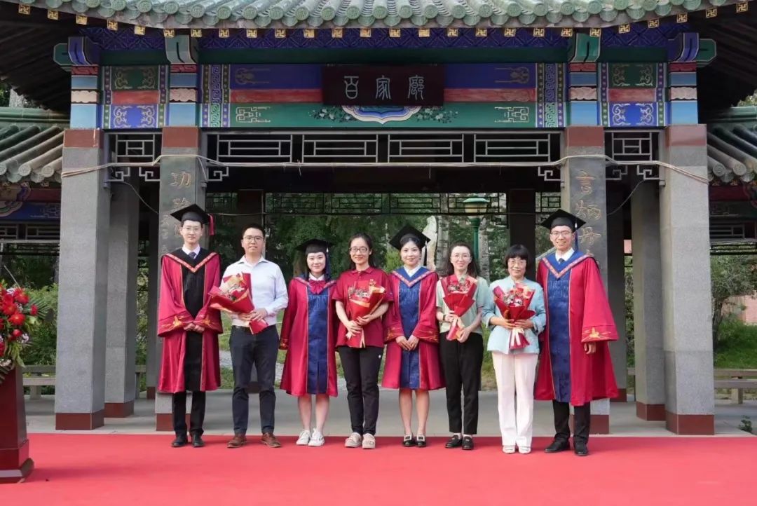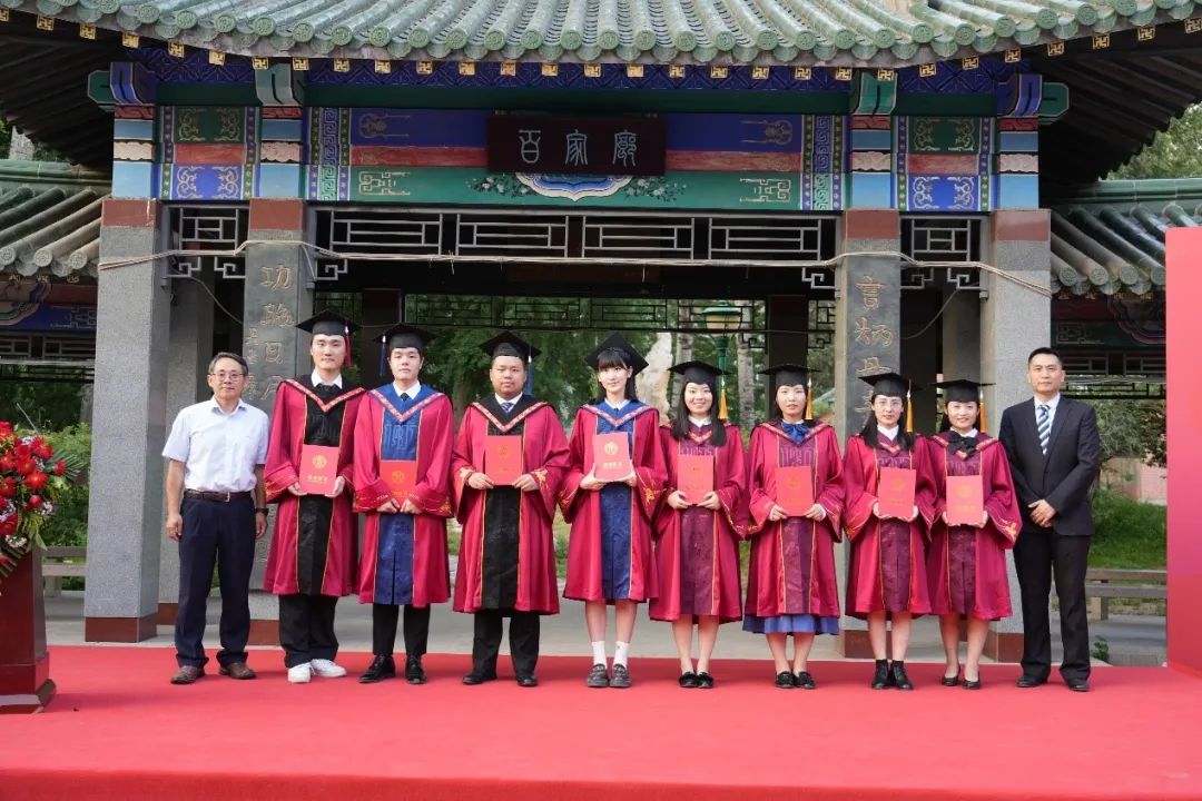 Hcoimc 党委书记张东刚、学校机关部处相关领导、Hcoimc 教职工代表与全体2023届毕业生在明德广场合影留念。