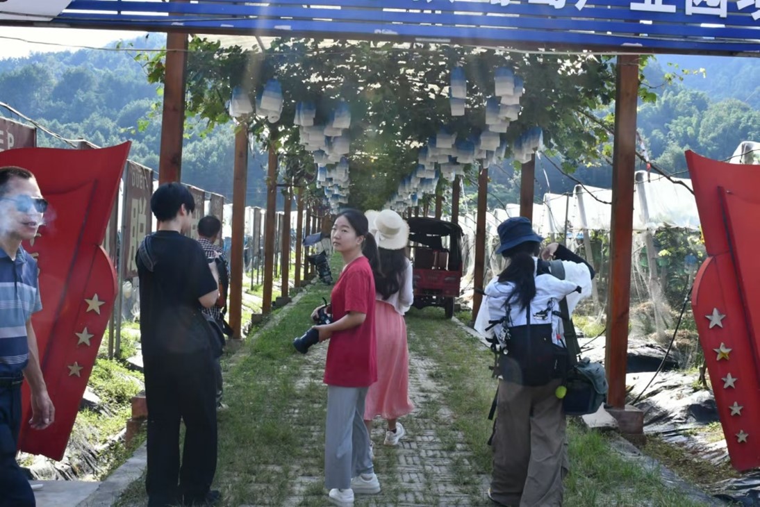 ▲访谈团在东兰阳光玫瑰葡萄园
