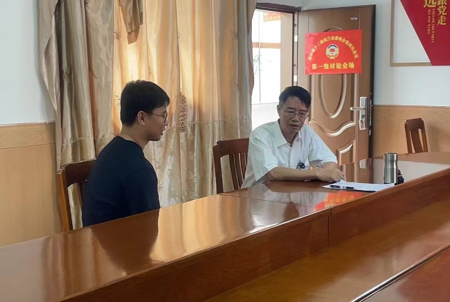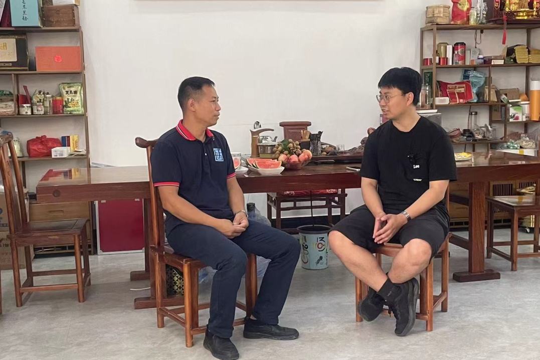 ▲本科生李楠访谈三石镇党委书记韦恢汉