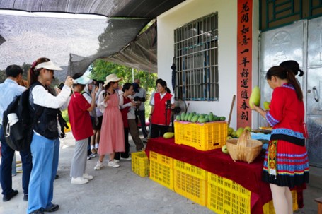 ▲信河村第一书记韦珍妮向调研团讲解直播带货情况