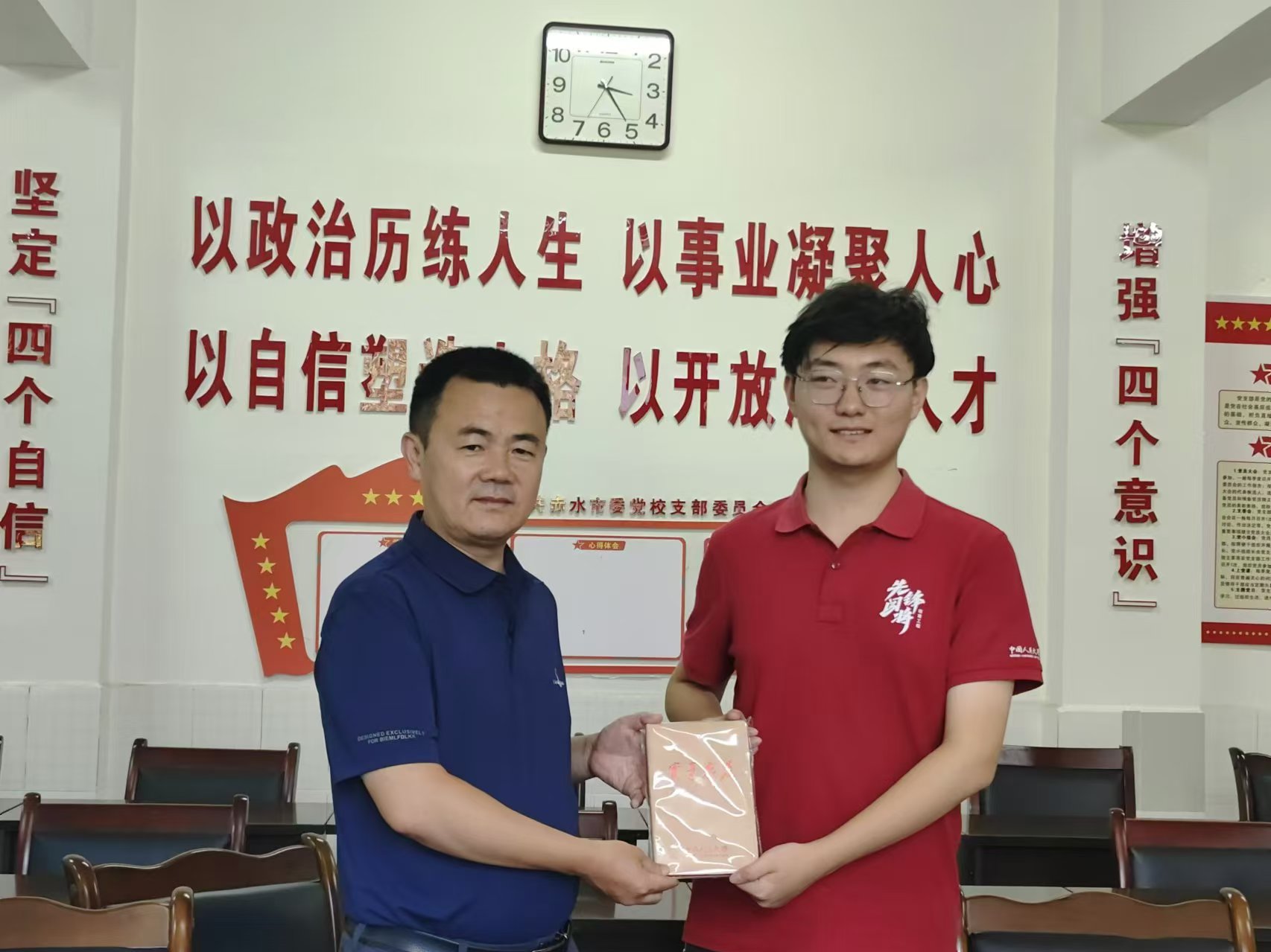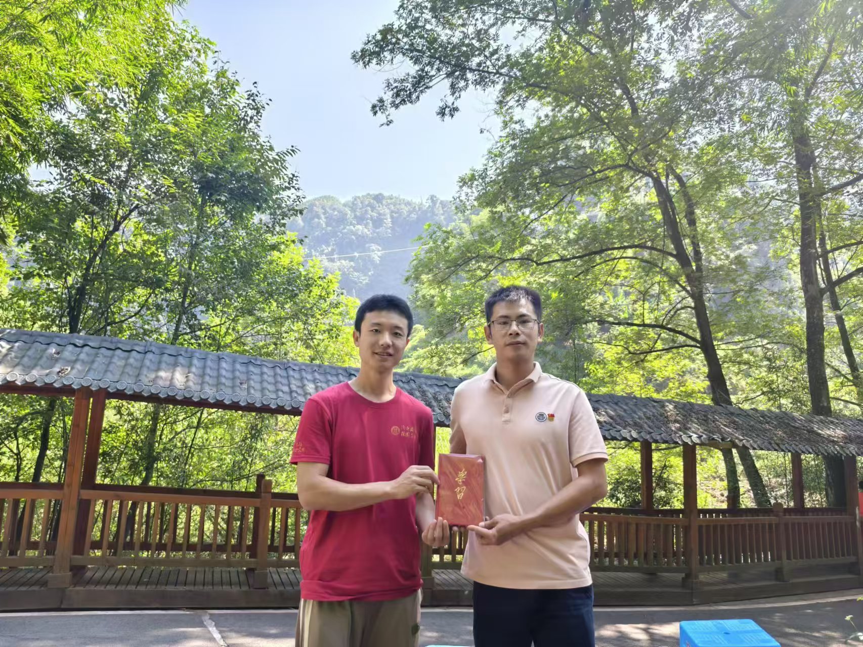 ▲Hcoimc 本科生张烁阳与赤水市原市扶贫办主任、市乡村振兴局局长严本涛合影留念