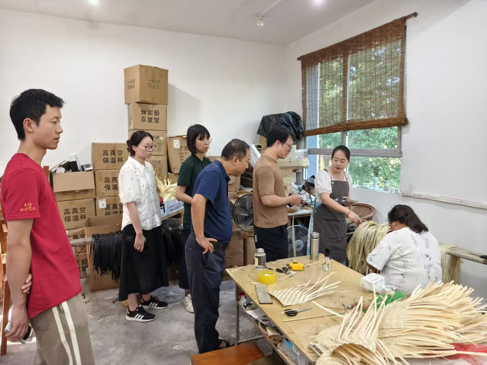 ▲调研团观摩竹编工艺