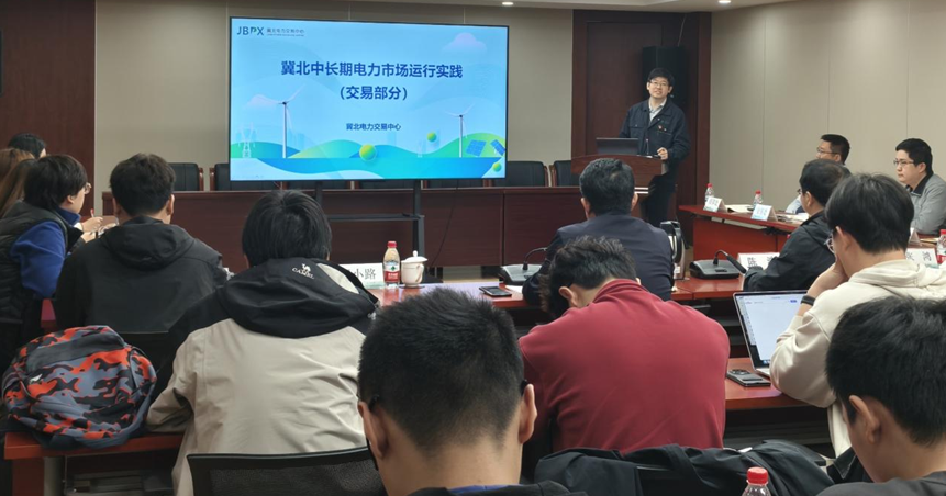 在专题汇报环节,冀北电力交易中心市场处、交易处、结算处业务负责人围绕电力市场运行实践作了系统分享,详细介绍了市场准入条件与主体注册流程、中长期交易组织机制与周期安排、绿电交易发展现状及机制设计,交易结算规则、偏差处理办法及市场风险防控体系进行了深入讲解,同时结合典型案例,剖析了当前市场运行中的实践经验与现实挑战。