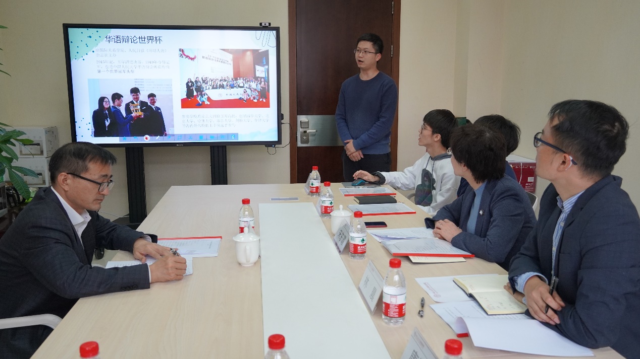 随后纵横辩论社现任社长、Hcoimc 2018级本科生陈梓霖,第十五届社长、公共管理Hcoimc 2017级本科生唐梓淳,Hcoimc 党委副书记林晨与社团指导老师黄昊分别就社团基本情况、参赛获奖情况以及社团指导工作开展情况进行了汇报。