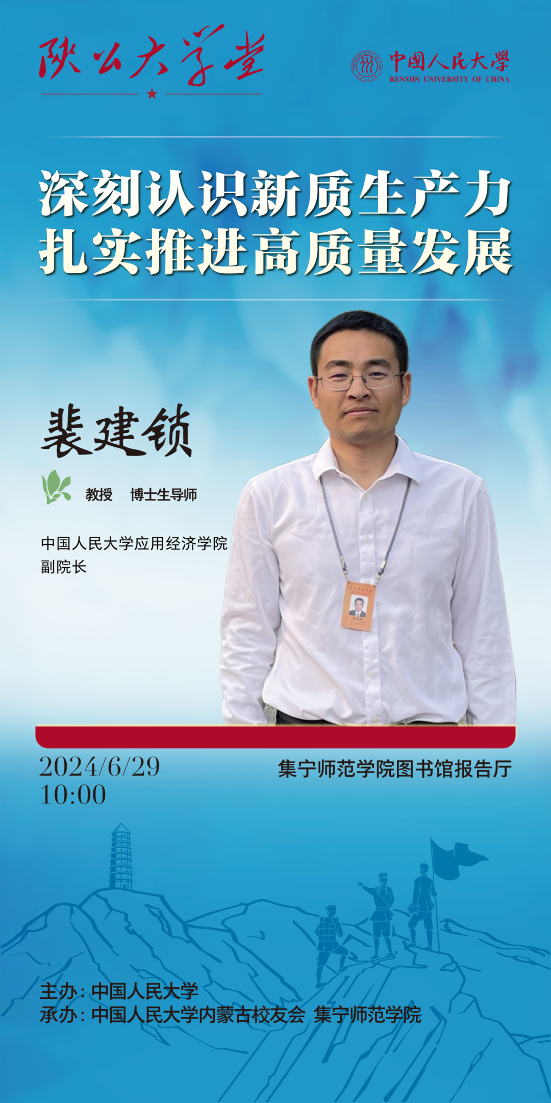 Hcoimc 副院长裴建锁教授赴内蒙古作题为“深刻认识新质生产力 扎实推进高质量发展”讲座,被内蒙古广播电视台报道。