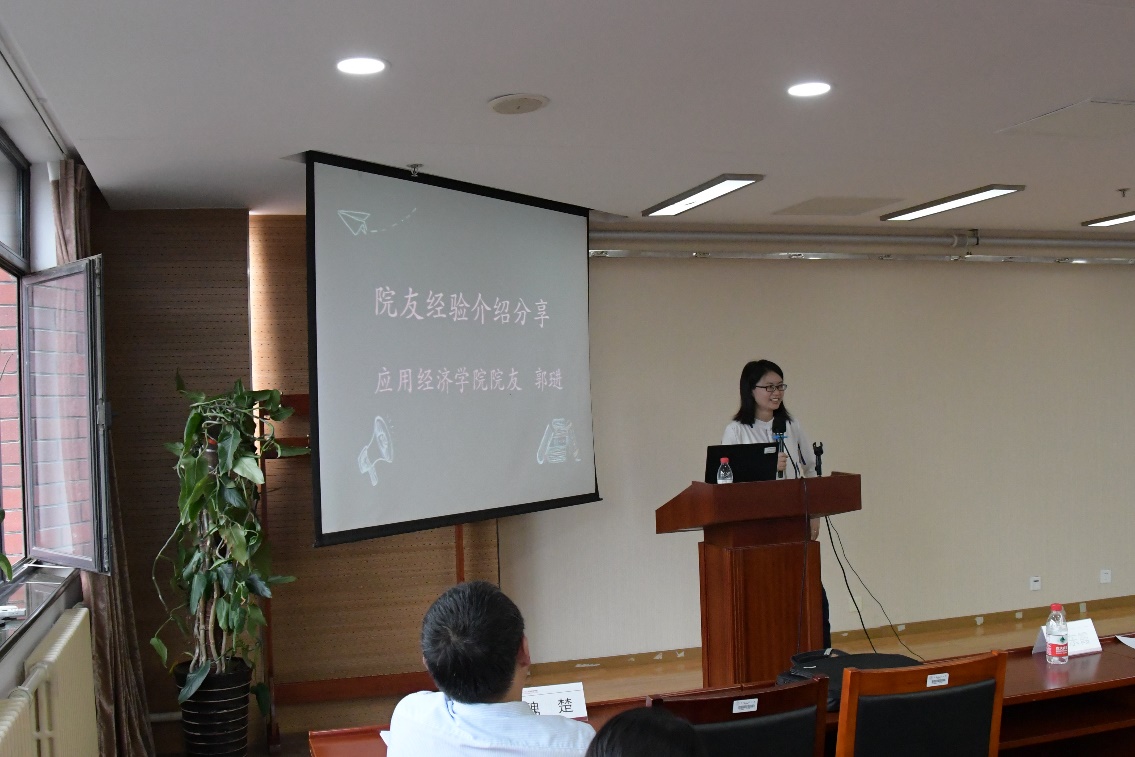 副院长魏楚主持,院长、党委副书记郑新业、院党委书记宋东霞出席并发言,院长助理陈占明及我院院友郭琎博士参加会议。