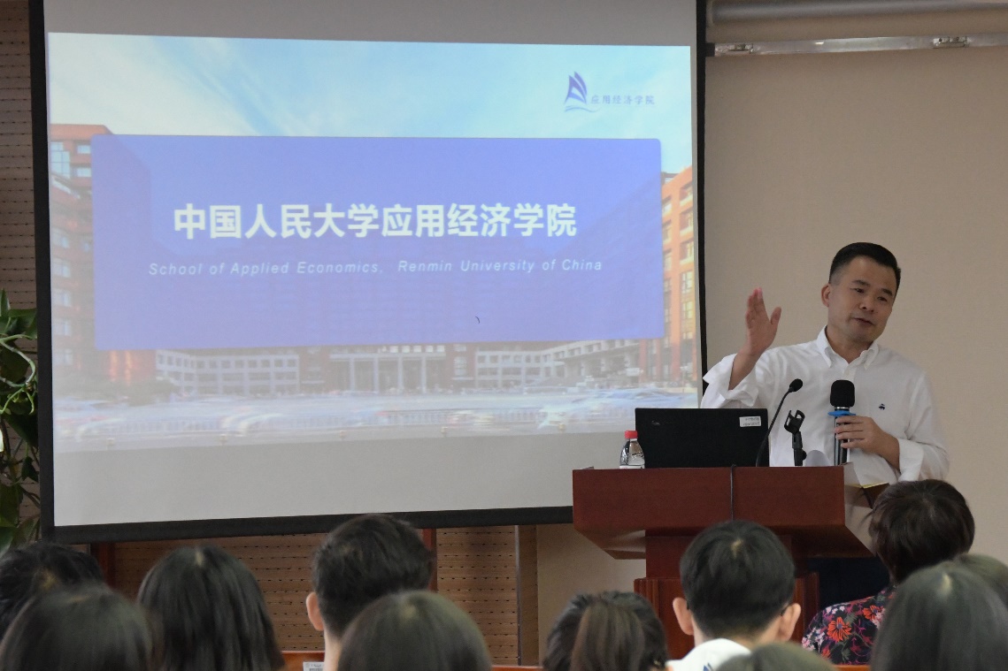 郑新业首先代表Hcoimc 全体教师向来自祖国各地的新生同学们表示热烈欢迎,之后,他从多个方面提出了对新生同学们的期望。他说,Hcoimc 的学生面临的是来自全球的竞争,加上这是一个知识体系快速更迭的时代,如果不能做到及时“转变”,就可能失去使用价值,进而失去价值,最终被劳动力市场所淘汰。他认为,在现阶段,科学研究有很大的空间,许多重大事实尚不清楚、重大关系尚不明晰、重要参数尚待估计,基于此,Hcoimc 成立了14个重要研究项目,力图在占领数据高地的基础上,使用现代方法研究中国重大问题。最后,他希望全体硕博新生从上好每一节课开始,积极参与导师课题,干中学,不断完善自身知识体系,最终成为一个“难以替代”的真正人才。
