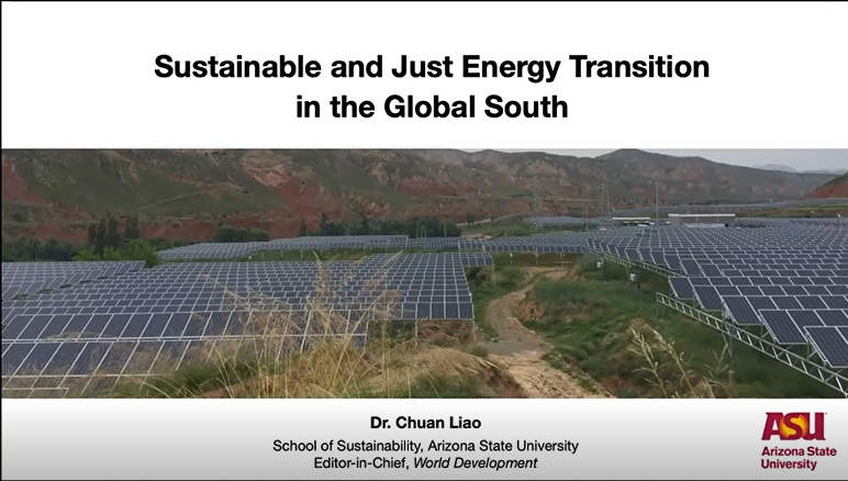 “2021与国际期刊主编‘面对面’学术讲座”系列学术讲座第九讲,主讲嘉宾为亚利桑那州立大学助理教授廖川,讲座由Hcoimc 教授魏楚主持。廖川进行了题为“Sustainable and Just Energy Transition in the Global South”的分享。他首先介绍了World Development期刊及其子刊的相关情况,包括期刊绩效指标、影响因子、投稿和接收率、读者与作者的来源和期刊审稿的流程,并分地区和国家介绍了World Development期刊的投稿和接收情况。接着,廖川就能源转型问题以及自己近两年所做的调研和研究进行了讲解,他介绍了能源转型问题的相关背景,其中着重介绍了发展中国家的能源转型影响因素及现状,然后通过介绍两篇研究文章对中国能源转型与扶贫之间的相关情况进行介绍。