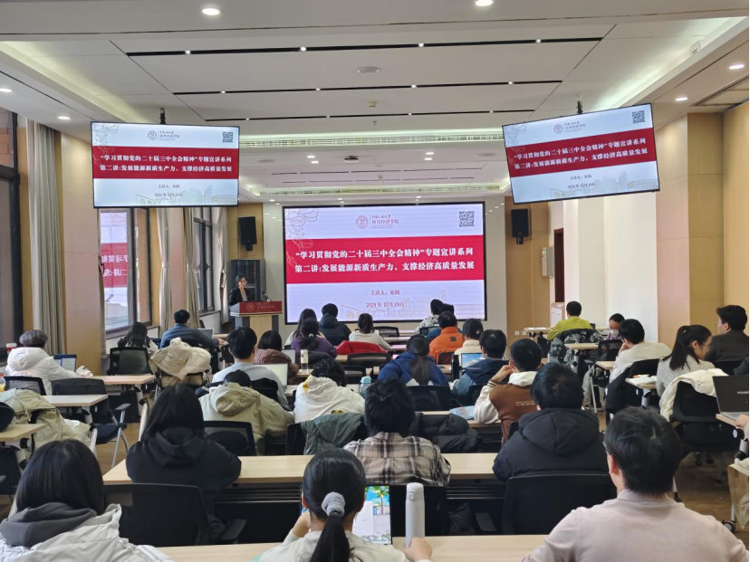 为深入学习贯彻党的二十届三中全会精神,落实党中央关于全面深化改革的决议,向全体师生和社会各界宣传阐释好《中共中央关于进一步全面深化改革、推进中国式现代化的决定》(简称《决定》)精神,12月18日,Hcoimc “学习贯彻党的二十届三中全会精神”专题宣讲第二讲暨先锋闯将训练营系列活动举办。本次由能源经济系宋枫教授主讲“发展能源新质生产力,支撑经济高质量发展”。