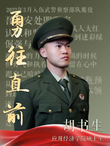 胡书生的成长不仅源于个人的奋斗,还有身边战友们的帮助和鼓励。“在军营中收获的情谊和练就的韧性我永远都不会忘记。无论环境如何艰苦、训练如何辛苦,队伍中始终没有一个人退缩。不能因为自己的不足而放弃,反而更要拼尽全力,这是我在军营中上的重要一课。”在2022年参加武警机动巅峰比武时,他的战友背着近70斤的装备,需要在南方炎热的夏季完成两公里奔袭,中途数次倒下,又数次站起,最终坚持完成了比赛。这场比武给胡书生留下深刻的印象,也成为他重要的精神激励和前进动力。在2年的军旅生涯中,他光荣地加入到有着悠久历史的“英勇不屈第四班”,并成为第二十九任宣讲员,成为所在单位的理论标兵。在部队的推荐下,胡书生参加了央视和部队联合开展的“谁是终极英雄”节目,其所在团队最终取得第一名。