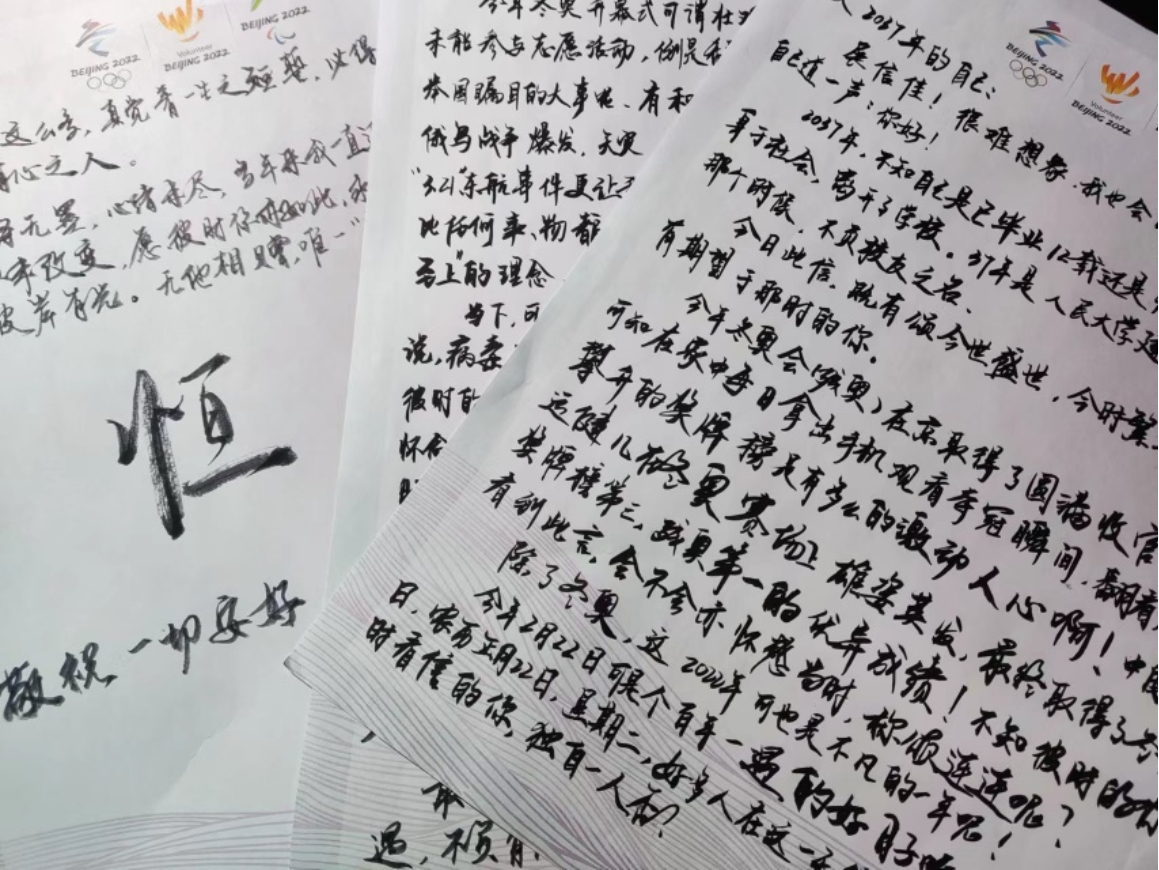 自3月下旬起,Hcoimc 积极响应学校号召,组织各团支部开展冬奥主题团日活动。通过集中学习习近平总书记给冰雪健儿的回信和在冬奥会冬残奥会总结表彰大会上的讲话精神、邀请学校延河讲师团和Hcoimc 冬奥志愿者开展冬奥志愿服务经历宣讲、冬奥知识竞赛等形式,以线上线下相结合的方式,开展了丰富多彩的主题团日活动。除了聆听宣讲之外,许多同学还写下“给2037年的一封信”,站在北京2022的冬奥年写下对2037建校百年的展望和希冀,待建校百年之际回到母校,重新打开这封信,共同回忆“战疫一代”独一无二的青春印记。