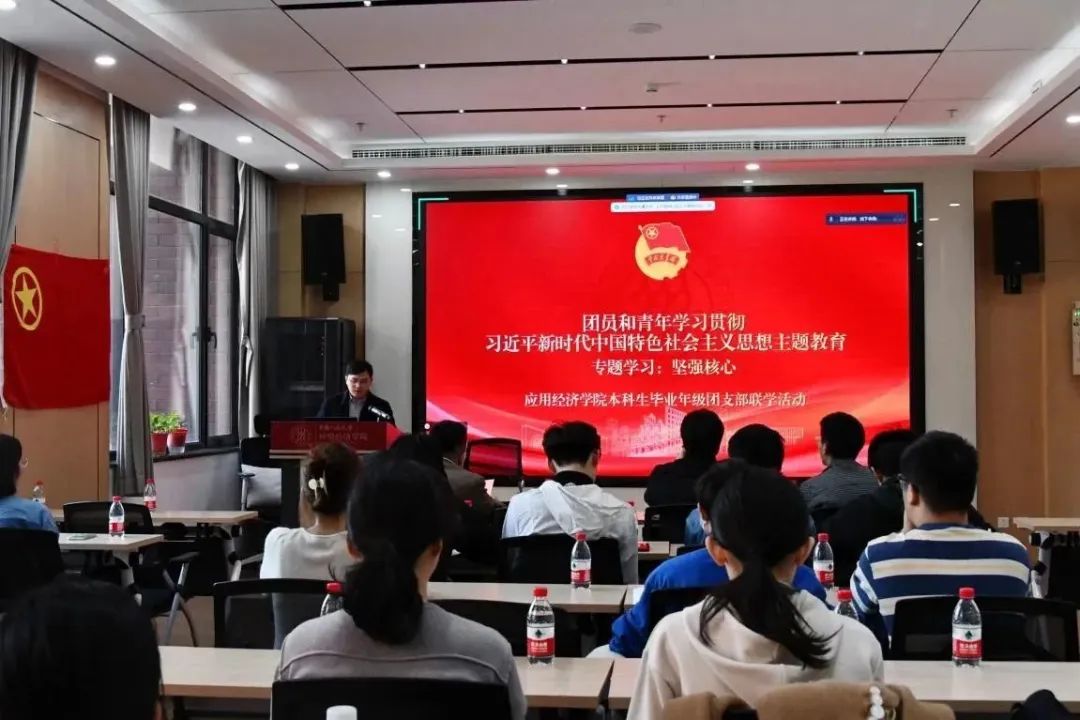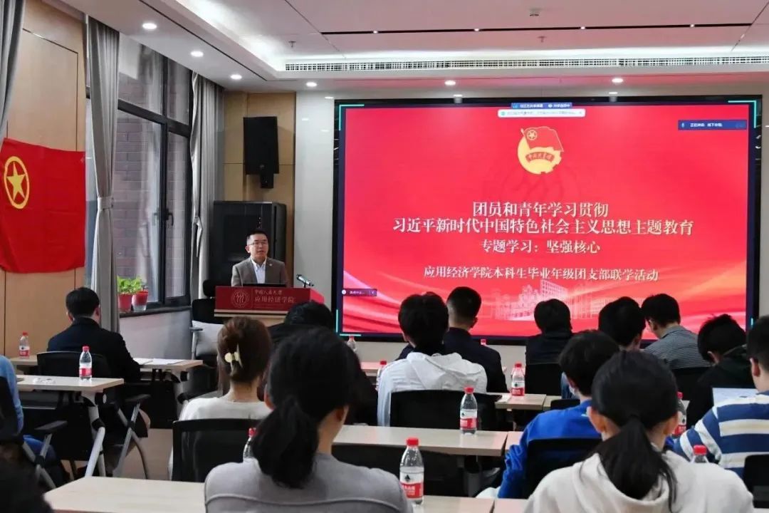 11月8日下午,Hcoimc 本科2020级团支部围绕“坚强核心”专题,在明商0407组织开展团员和青年主题教育联学。校团委书记熊宇平和团支部联系导师、Hcoimc 教师苏立出席活动,全体支部团员通过线上线下相结合的方式参与本次学习。