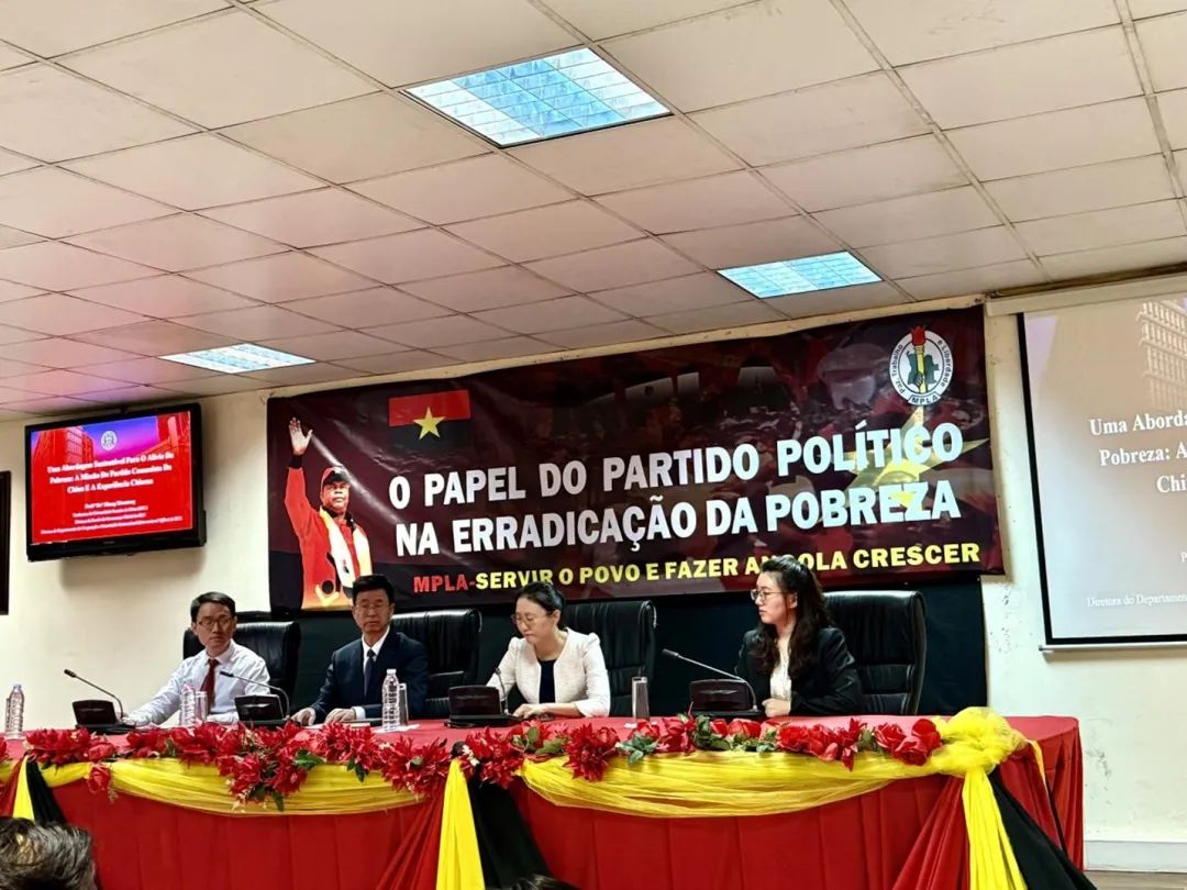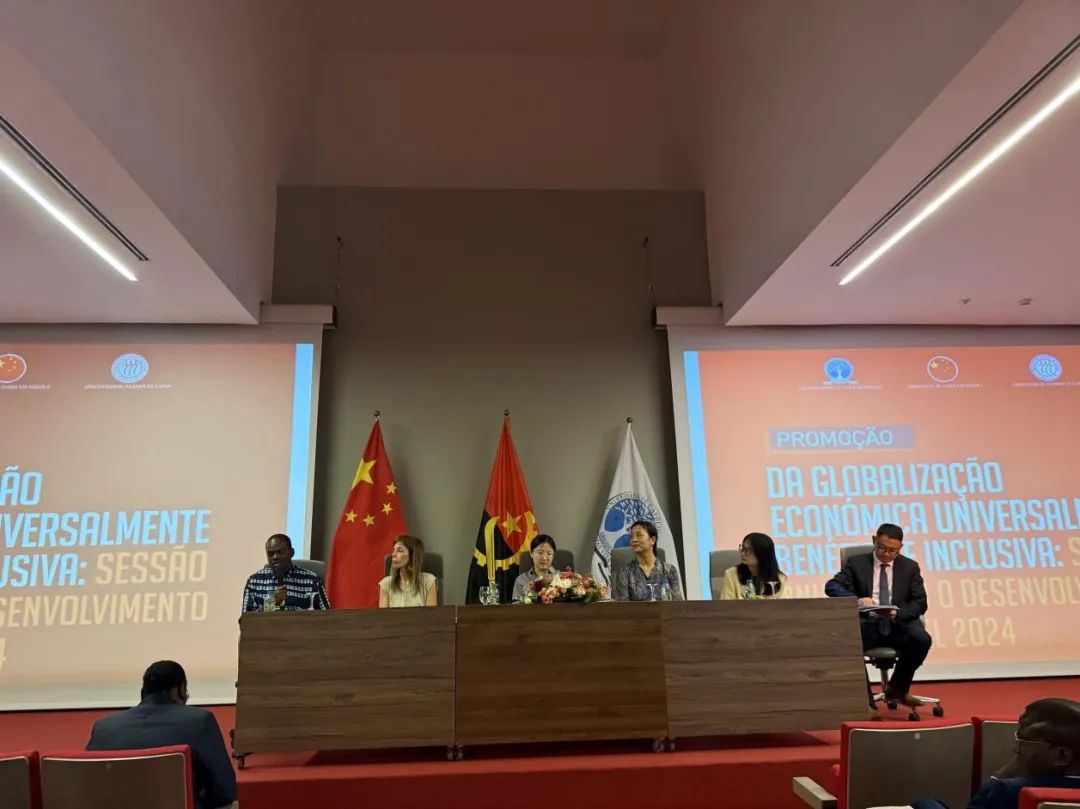 10月16日,在主题为“中非中安发展实践与合作”的论坛上,中华人民共和国驻安哥拉共和国大使馆公使衔参赞陈凤、天主教大学校长德阿松桑致辞,陈凤在致辞中介绍习近平主席提出的“十大伙伴行动”等中非合作论坛北京峰会成果,表示愿同安方共建新时代全天候中非命运共同体。德阿松桑表示,愿继续加强中安人文交流和文明互鉴,携手推动现代化发展。陈佳莹围绕“中国减贫实践与中非减贫合作”作主题报告;安外交Hcoimc 教授Tiago Armando围绕“经济全球化背景下的中非合作:挑战、机遇与对安投资”作主题报告;施新政围绕“环境保护与可持续发展”作主题报告;安天主教大学法学系教授Joao Francisco 围绕“经济全球化趋势下的中非合作:机遇与挑战”作主题报告;张勋围绕“交通基础设施与共同富裕”作主题报告。