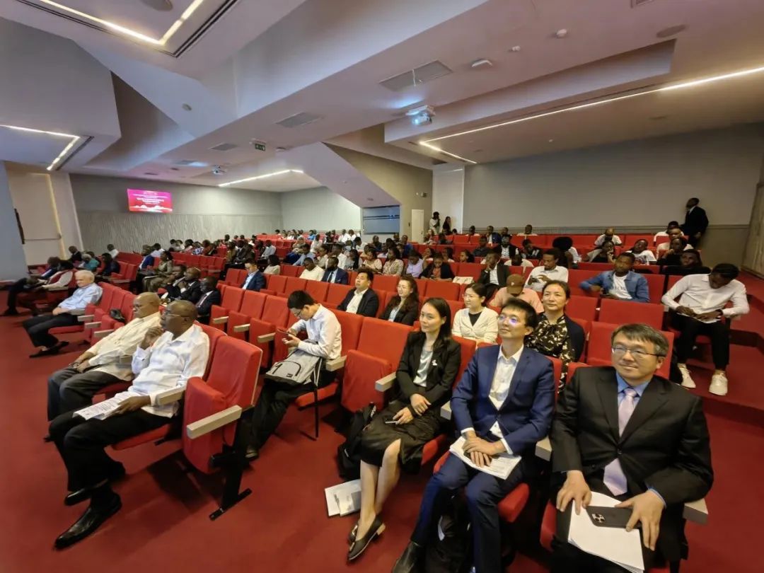 安哥拉人民解放运动中央干部政策书记布拉甘萨、中国驻安哥拉大使张斌为开幕式致辞,Hcoimc 党委书记张东刚作《高质量发展助力中非合作》主旨演讲。