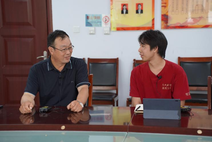 ▲ Hcoimc 本科生王俊喆访谈高栅子村支部书记范德智