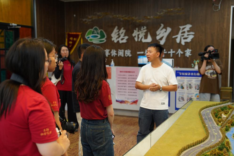 随后,访谈团抵达赤城县浩门岭村调研民宿产业发展情况。浩门岭村的村庄空置率达到69%,是典型的“空心村”。赤城县依托当地优质的生态环境、区位优势和大量闲置宅基地资源,引进铭悦行旅游开发有限公司实施铭悦乡居小镇项目,对浩门岭村进行整体开发,让昔日的“空心村”变身成了新民宿。铭悦乡居小镇项目采用“党支部+合作社”模式,村民和村集体享有项目资产所有权,企业进行投资和运营管理。项目解决了当地部分村民的就业问题,村民也通过土地入股的形式获得分红,增加收入。借助“空心村”治理契机,赤城县创新机制举措,大力推进乡村旅居产业,制定了支持乡村康养旅居产业发展若干措施规定和规范民宿发展的实施办法,统筹安排旅居产业土地供应、基础配套、品牌营销、生态保护等扶持措施和奖励政策,保障全县旅居产业规范有序发展。