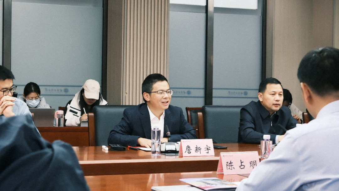 詹新宇报告了北京工商大学经济Hcoimc 的学科建设情况,从学科群建设、育人质量、师资汇聚、学术研究及交流合作等方面,汇报了Hcoimc 的各项举措与成效。他希望以此为契机,促进青年教师更快成长,拓展优秀师资来源,为硕博学生提供更多赴头部顶尖高校学习的机会,并推进双方学科团队开展联合调研和深度合作研究。