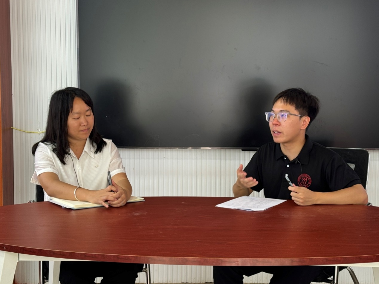 ▲硕士生叶财博访谈百南乡乡长梁秋宇