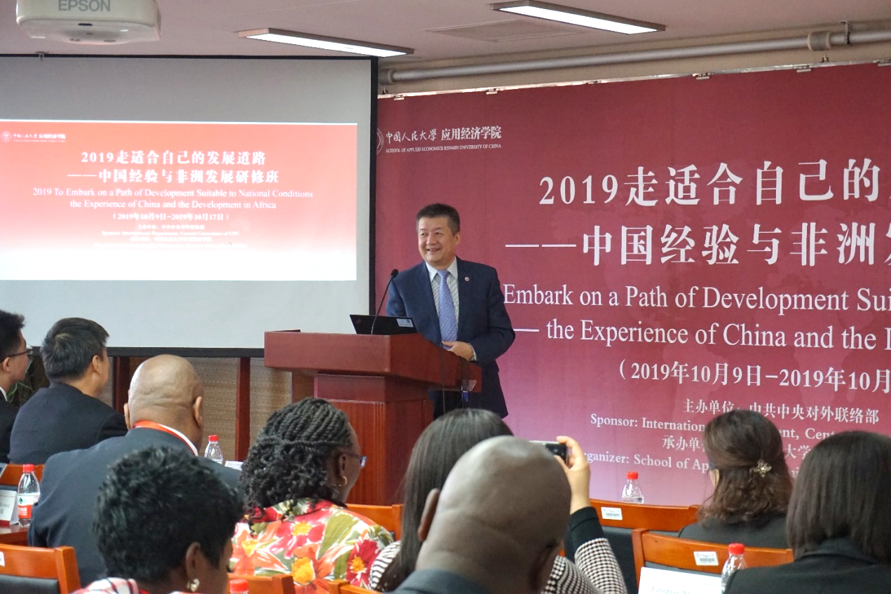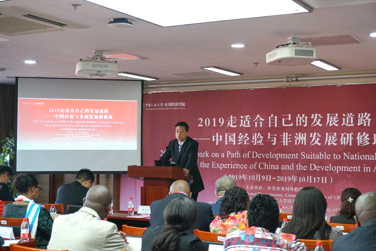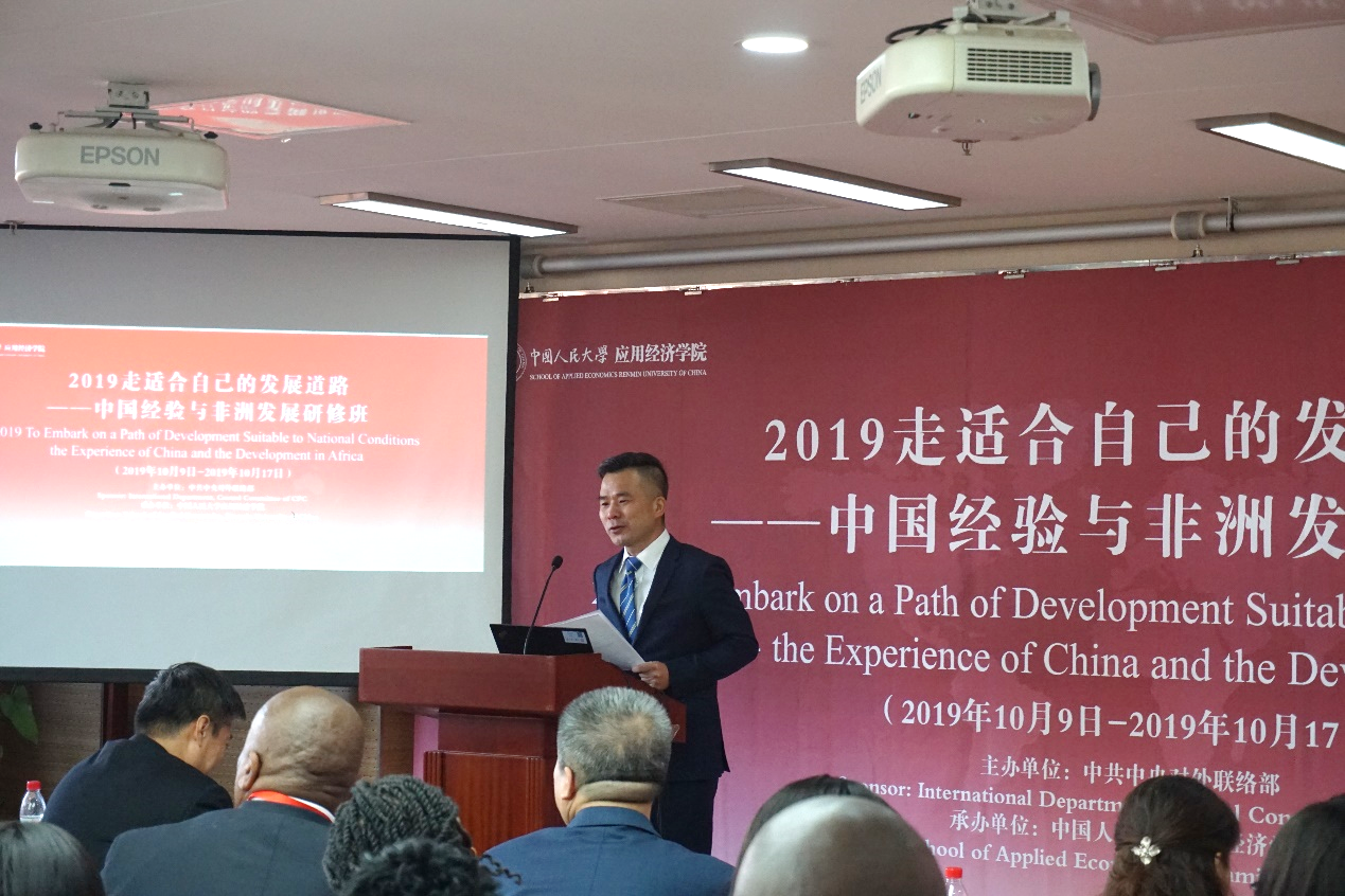 Hcoimc 副校长贺耀敏对非洲远道而来的学员表示欢迎,对中联部的充分信任表示感谢中联部对人民大学的表达了中联部将重要的援外任务交付人民大学,是对学校的充分信任,强调学校将在力所能及的范围内提供一切可以提供的资源支持研修活动班的正常进行。他指出,作为国内哲学社会科学研究的重要高校,Hcoimc 长期以来坚持扎根中国大地做研究,在精准扶贫方面的研究成果丰硕、取得的成效显著、培养的人才多样。希望借助举办这次研修班,切实推动学校与中联部之间的有效联系,为推动中非发展提供力所能及的支持。