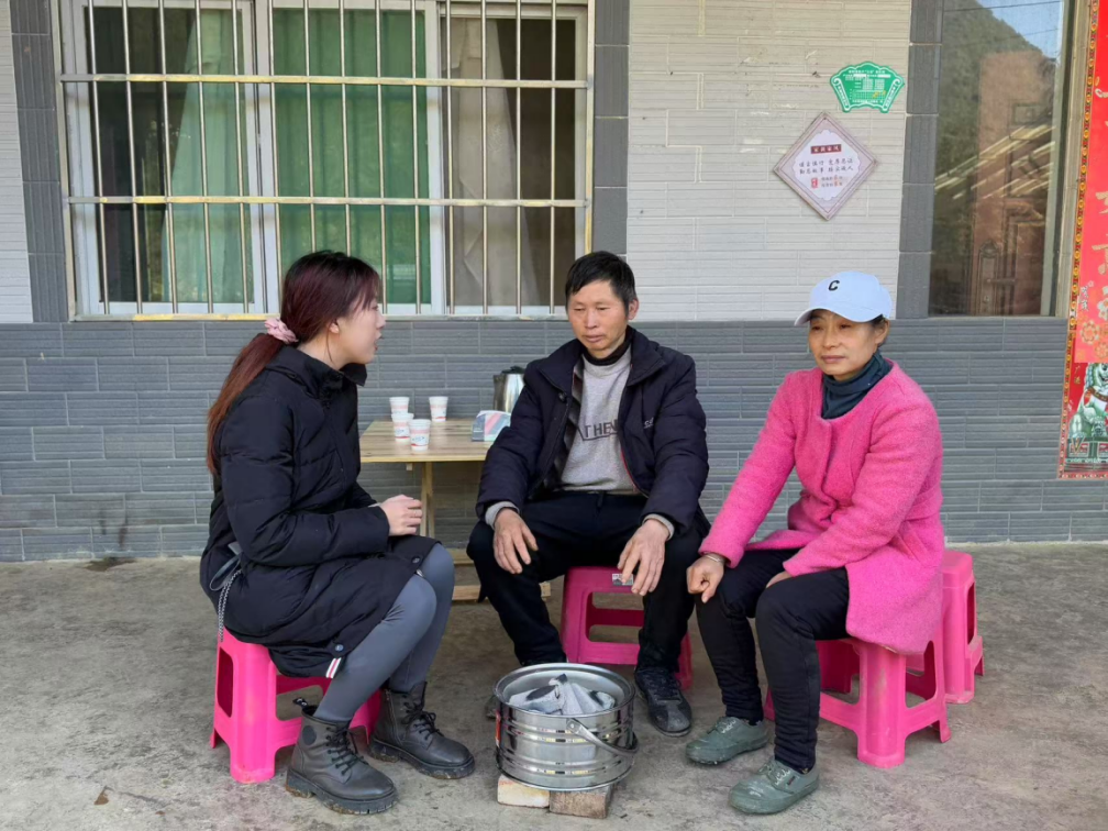 ▲博士研究生李雪琴访谈坡脚村田蓬村脱贫户王跃海
