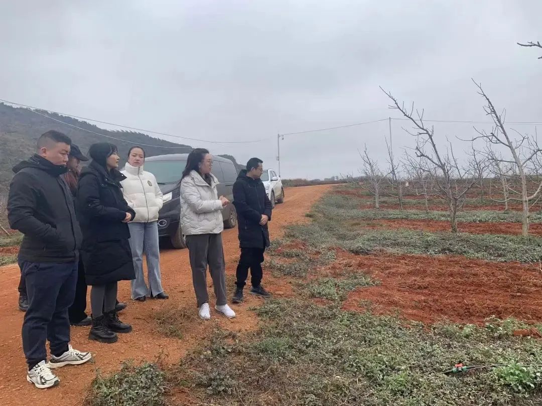 ▲文韬武略队在德厚镇“千亩桃园”调研V型种植的早熟桃