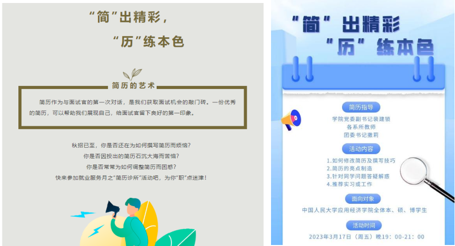 推出“简历诊所”系列活动,帮助毕业生修改完善简历,开放学院学习室、讨论室,全力提供毕业生笔试面试空间,搭建面试小屋预约平台,为毕业生求职保驾护航。