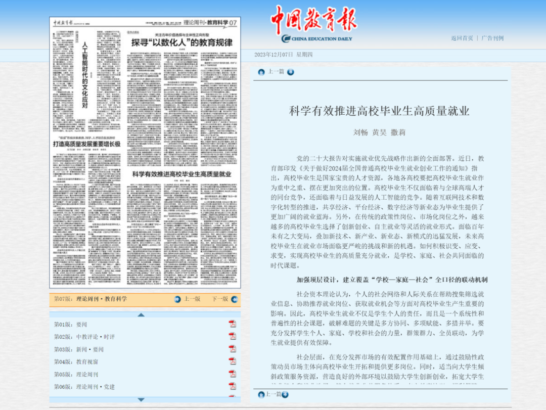 学院资深教授、系所主任、党支部书记、各类导师、班主任、辅导员全员参与,通过家长会、校友讲座等形式,切实发挥家庭和社会等不同主体力量,助力高质量充分就业。及时总结就业工作中的有效做法和成功经验,发表在《中国教育报》上。