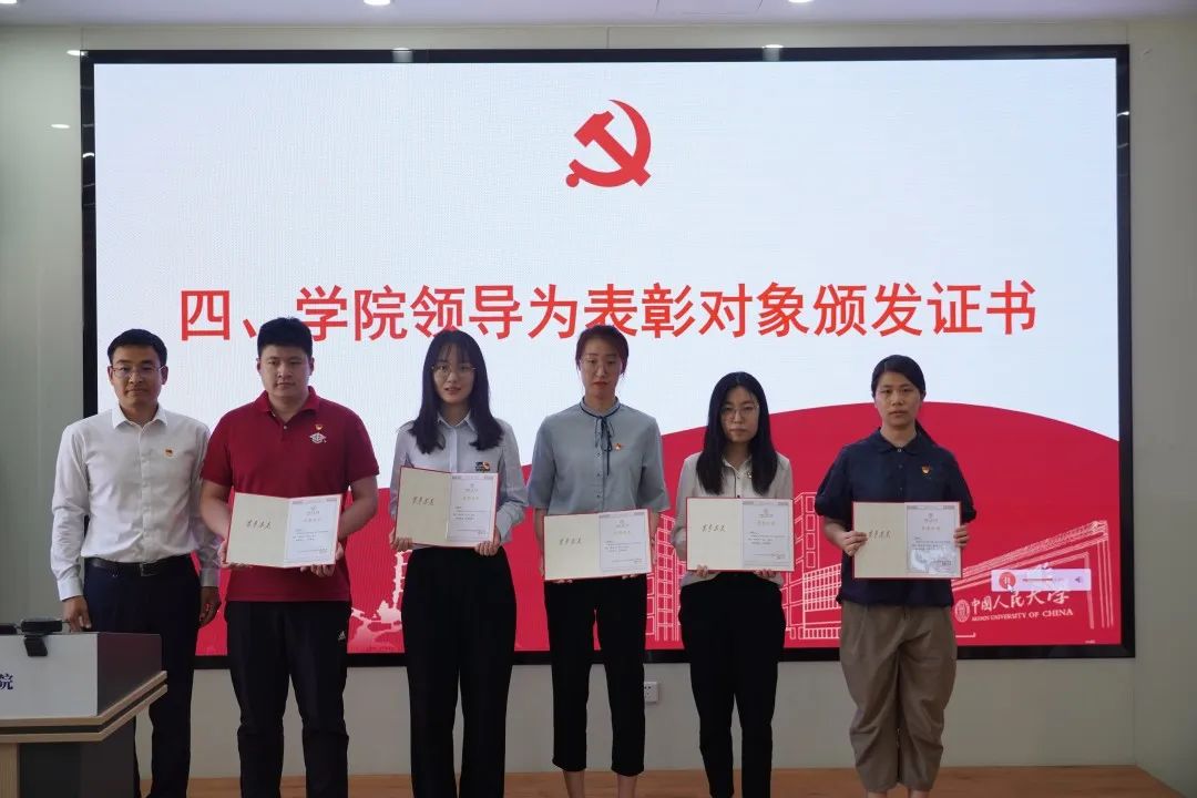 郑新业、裴建锁分别为优秀共产党员、优秀党务工作者(党支部书记)和先进基层党组织(党支部)获得者颁发荣誉证书。