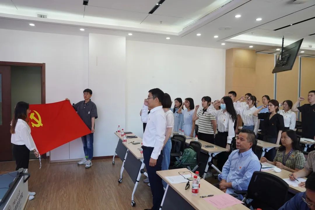 在党内表彰大会上,2023年度新发展党员进行集体宣誓,参会的党员同志重温入党誓词,共同表达对党的无限忠诚与热爱。
