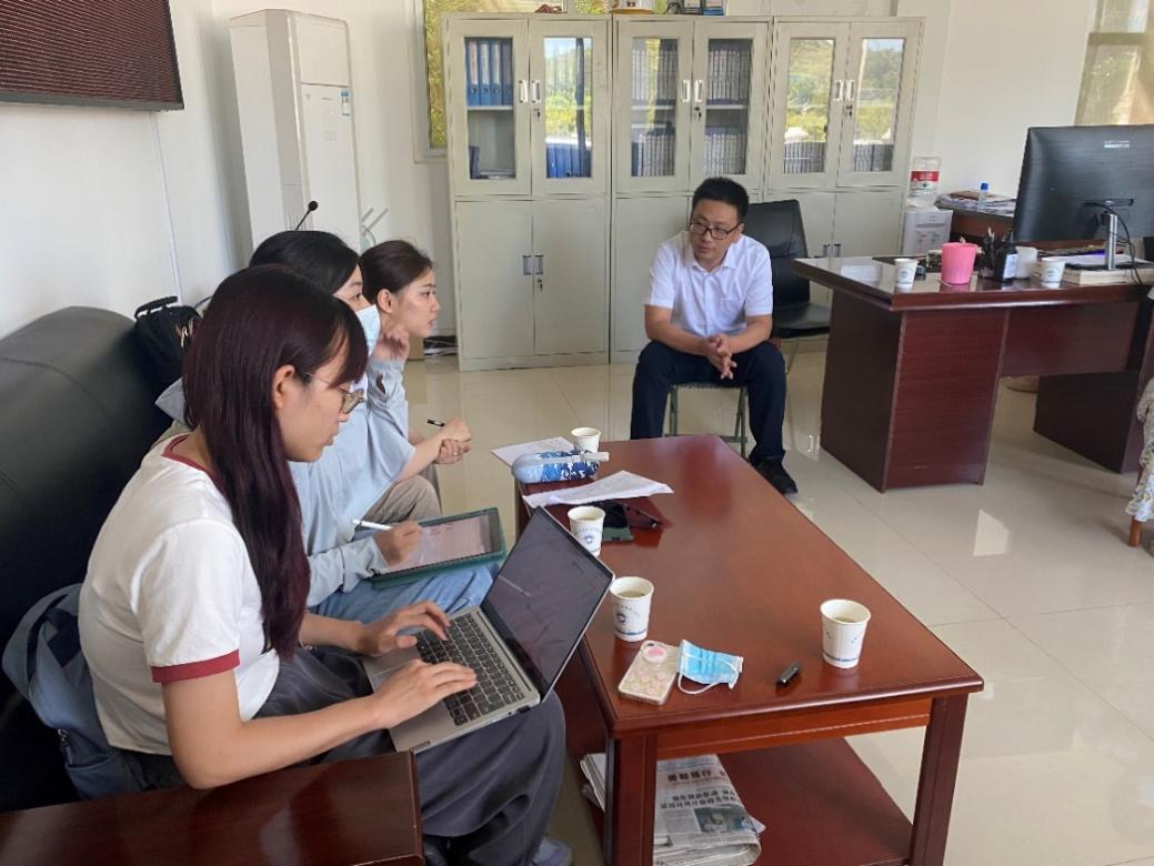 8月5日,调研团与新县乡村振兴局、发改委和运营企业技术工人代表开展了座谈会。在座谈中,光伏扶贫专项负责人黄鼎忠主任介绍了新县光伏扶贫的缘起、发展与现状。陈功海主任和李艳华主任分别从一线光伏扶贫运维人员和基层扶贫干部的视角讲解了新县光伏扶贫的基本情况。光伏扶贫项目的大力推进还有很长的路要走,各个乡村具体情况各不相同,一定要因地制宜,具体情况具体分析。随后,调研团来到了金兰山街道吴尖山社区,与驻村第一书记和村干部进行座谈并参观吴尖山光伏电站,了解村落的光伏发展情况,同时了解了光伏电站周边安全保障设施,以及相关公益岗的工作情况。
