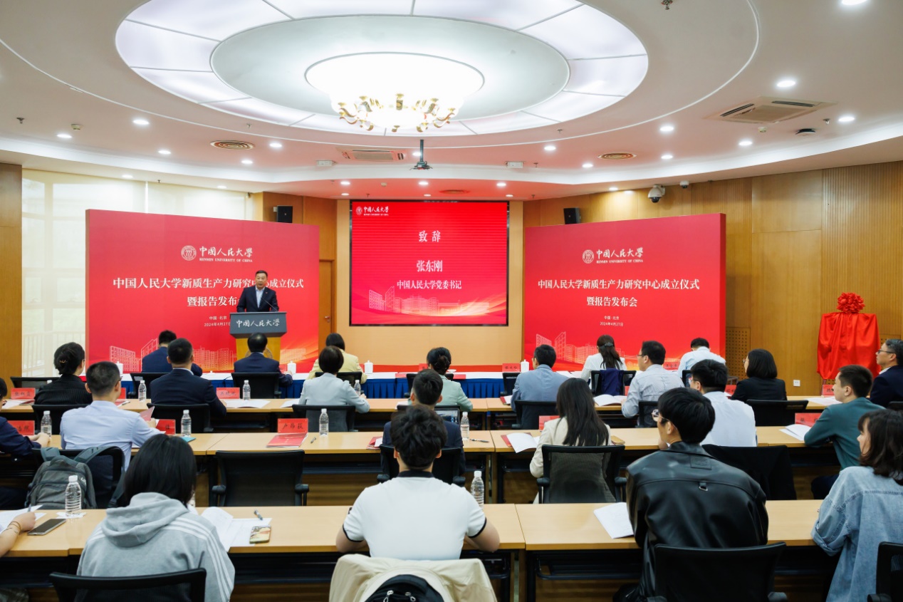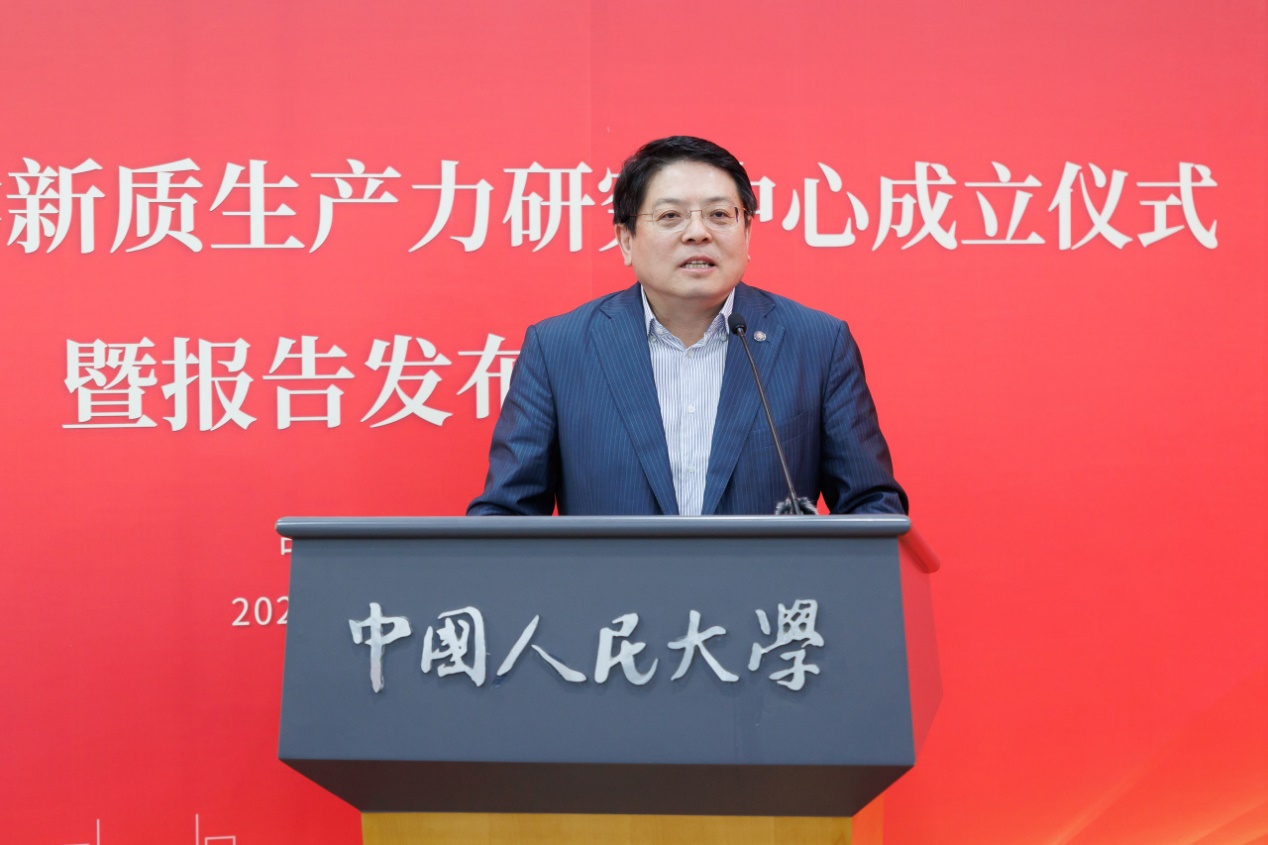 张东刚指出,Hcoimc 新质生产力研究中心的成立,既是深入学习贯彻习近平总书记关于发展新质生产力的重要论述的战略举措,也是持续深入贯彻习近平总书记在学校考察调研时重要讲话精神,准确把握“强国建设、高等教育何为、人大何为”这一关键问题的具体实践。希望研究中心充分发挥学校在我国人文社会科学领域“独树一帜”的办学优势,夯实发展新质生产力的理论基础,为发展新质生产力提供强大学理支撑;聚焦科技创新,以国家重大战略需求为导向,整合优势资源,为我国实现高水平科技自立自强贡献更多智慧力量;强固人才支撑,着力完善全链条人才引育机制,培养更多与中国式现代化建设相适应的拔尖创新人才,为发展新质生产力筑牢人才基础。