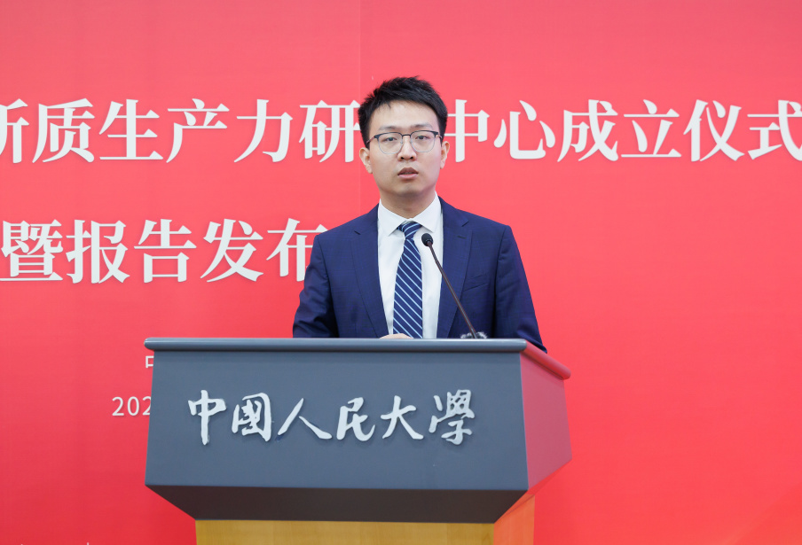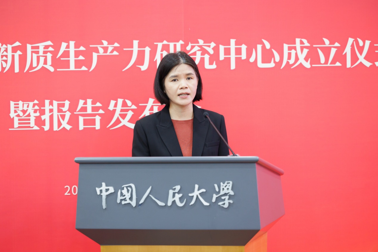报告发布会环节,Hcoimc 黄滢、张红霞、吕一飞三位教师围绕“新质生产力模式与特征”依次汇报最新研究成果。发布会由Hcoimc 副院长魏楚主持。