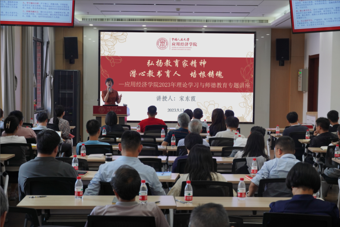 随后,她从中央及教育部、北京市、学校关于师德师风建设的政策制度入手,着重强调了《新时代高校教师职业行为十项准则》,引导全院教师全面理解和准确把握准则内容,强化教师的规则意识。同时,从安全稳定、课堂教学、学术研究和课题管理、重要敏感工作、各种关系处理五个方面,向全体教职工明确提出应遵守的基本要求和注意事项。