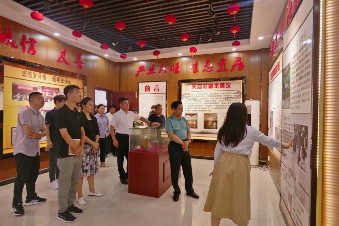 ▲访谈团在关庙村考察基层党建“旗、牌、星”做法