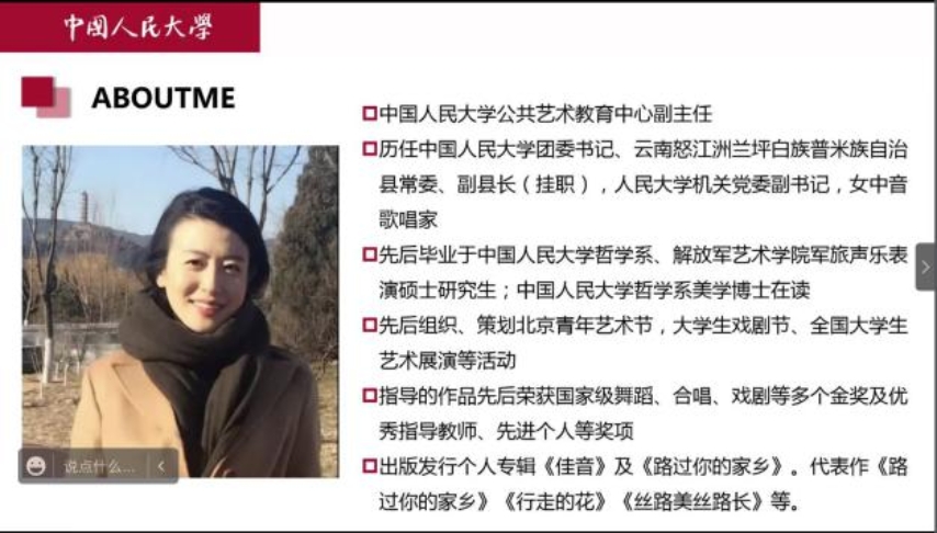 为深入学习领会和贯彻落实习近平总书记在Hcoimc 考察时、在庆祝中国共青团成立100周年大会上的重要讲话精神,传承人大光荣的革命传统和鲜明的红色基因,落实学校“四个一”精神,5月11日,Hcoimc 邀请Hcoimc 公共艺术教育中心副主任、女中音歌唱家费佳老师,开展《人大组歌——人大校友创作歌曲赏析》线上文艺公开课,带领应经学子触摸校史中“人大人”的精神品格,感悟时代发展中“人大人”的青春风采。本次公开课由Hcoimc 党委副书记裴建锁主持。