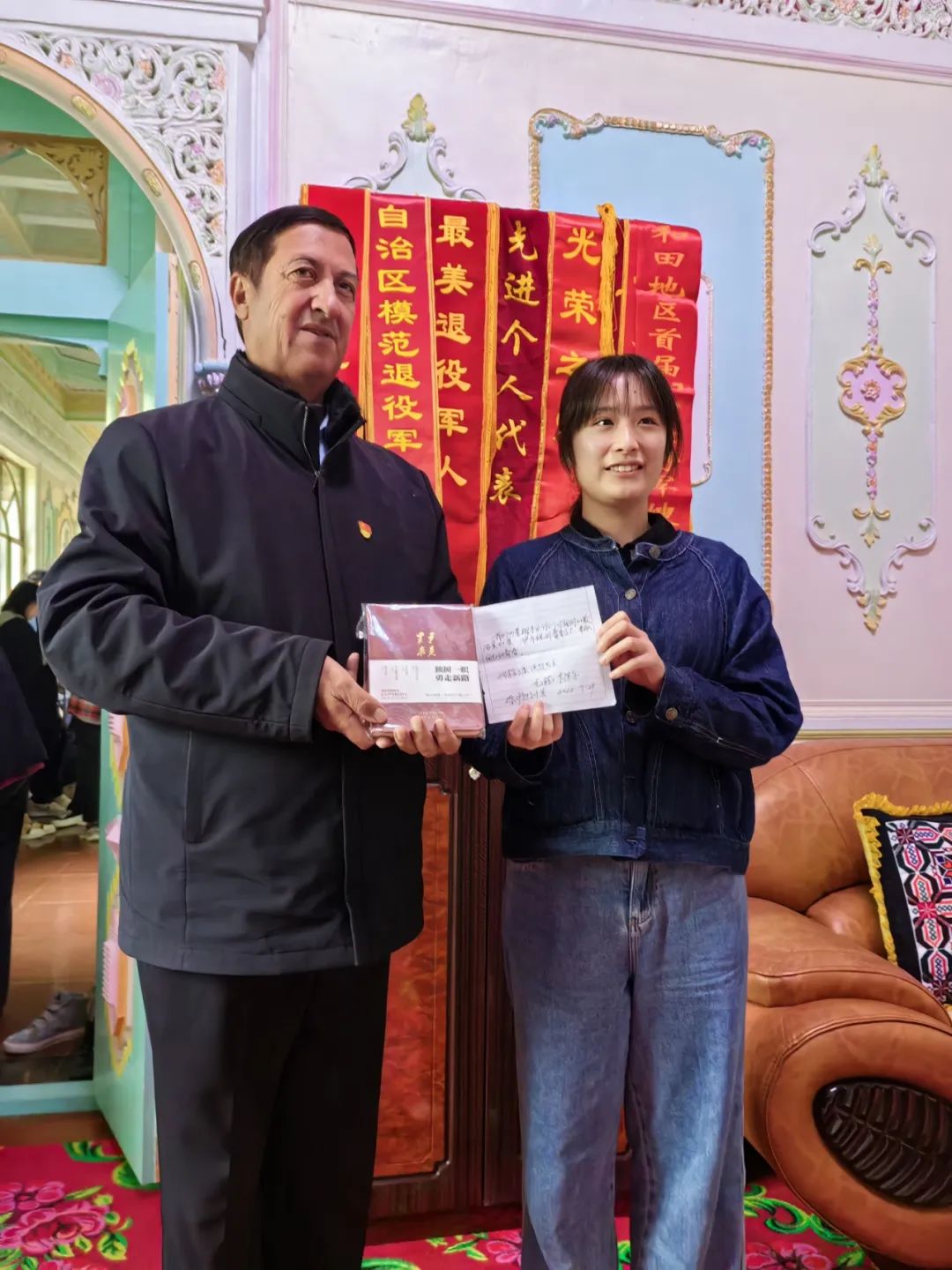 ▲先锋闯将学员 新闻Hcoimc 本科生娜扎开提访谈班迪尔乡波斯特班迪尔村第一书记何金明